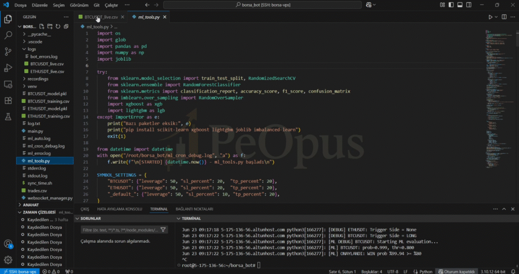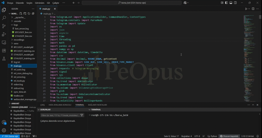 PeOpus’un dağıtık işlem motoru; likidite analizi, yapısal kırılım tanıma, çoklu zaman filtreleri, risk yönetimi, emir doğrulama ve otomatik konum yönetimi katmanlarını tek bir mimaride toplar. TradingView uyarılarınız, Kurumsal Bot Erişim Modülü üzerinden milisaniyelik hassasiyetle gerçek piyasa emirlerine dönüştürülür.