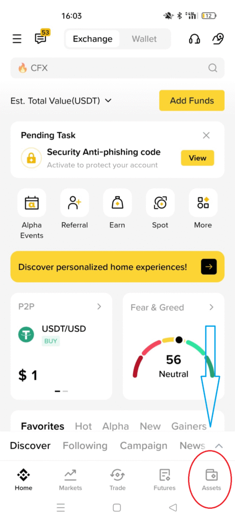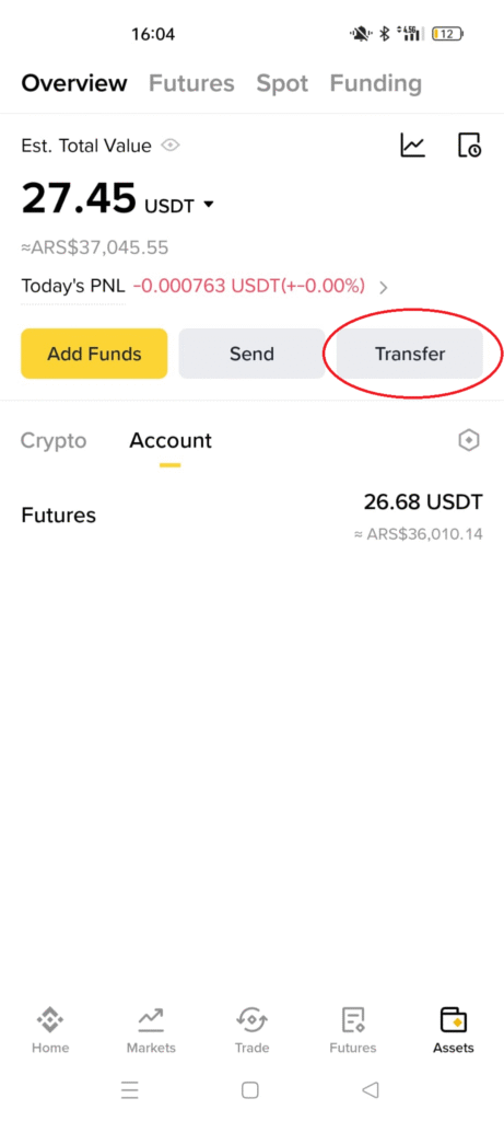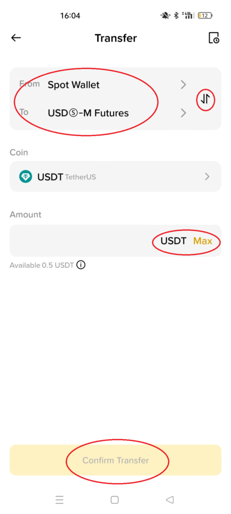 2️⃣ Ardından Transfer seçeneğine dokunarak Spot → Futures aktarımını yapınız.
