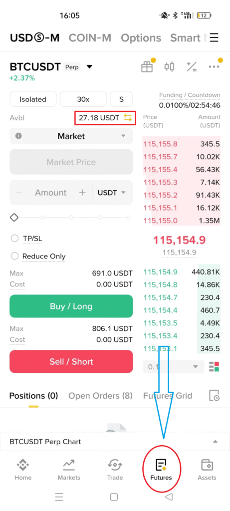 3️⃣ Transfer tamamlandığında, Futures sekmesine geçerek bakiyenizi görüntüleyebilirsiniz.