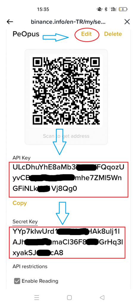 • API Key’inizi ve Secret Key’inizi bize iletmeniz gerekmektedir 🔐